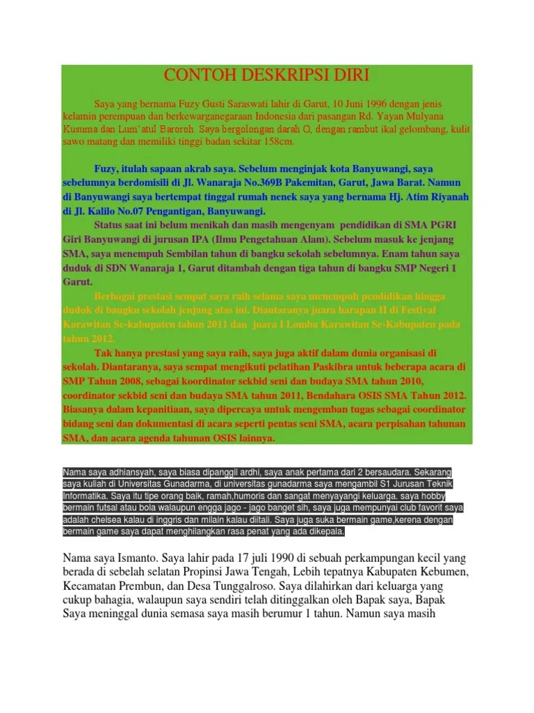 12/01/2019 · demikianlah contoh pengalaman pribadi tentang liburan masa kecil di sekolah pengalaman singkat berlibur ke suatu tempat semoga bisa . Cenderung padat dan langsung pada tujuan nya dibandingkan dengan karya fiksi lainnya . Disana dia melanjutkan sekolah menengah di . Cerpen atau cerita pendek merupakan bentuk prosa naratif aktif. View teks cerita sejarah research papers on academia.edu for free.