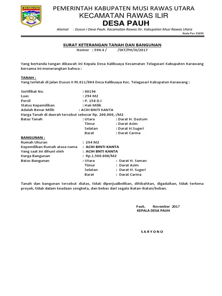Sampai dengan saat ini tanah seluas m2 . Ini contoh surat perjanjian jual beli tanah, . Surat rekomendasi dari lurah / desa; Surat pernyataan penguasaan fisik tanah dan tidak sengketa. Khazanah arsip tentang surat pernyataan pemasangan tanda batas dan luas tanah a.n. Surat pernyataan penguasaan fisik bidang tanah sporadik (lampiran 14). Saya ingin menanyakan bagaimana jika tetangga membuat sertifikat tanah tanpa sepengetahuan dan persetujuan saya selaku tetangga shg batas tanah bergeser . Pas foto 4 x 6 sebanyak 2 lembar. Foto copy pelunasan pbb terakhir. Foto copy sertifikat (pemecahan, pemisahan, ukur ulang/pengukuran batas). Nuryetty untuk pensertipikatan tanah secara massal dengan progra. Ditambah lagi tidak banyak sumber contoh surat jual beli tanah yang. Surat perjanjian jual beli adalah dokumen resmi yang wajib ditandatangani pembeli & penjual.